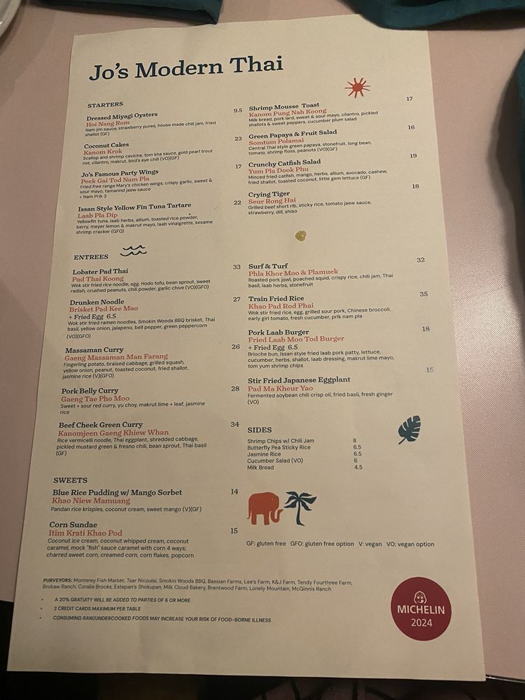 Jo’s Modern Thai, located in Oakland's Laurel District, offers a fusion of bold Thai flavors in a trendy, modern setting. With a diverse menu featuring creative twists on traditional dishes, this spot is a must-try for food enthusiasts looking for something familiar yet fresh. Standout items include the Drunken Noodles with Smokin Woods BBQ brisket, the Crunchy Catfish Salad, and the Shrimp Mousse Toast. The atmosphere is laid-back yet stylish, perfect for a casual night out with friends or a romantic date. Service is top-notch, with attentive staff who are knowledgeable and eager to cater to your needs. Whether you're a Thai food novice or a seasoned fan, Jo’s Modern Thai promises a dining experience that is both satisfying and memorable. Don't miss out on their Happy Hour specials and innovative cocktail menu.